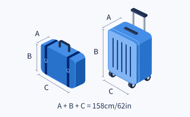 | 위탁 | 국내선 | 20kg | 3면의 합이 158cm(62in) 이내 |