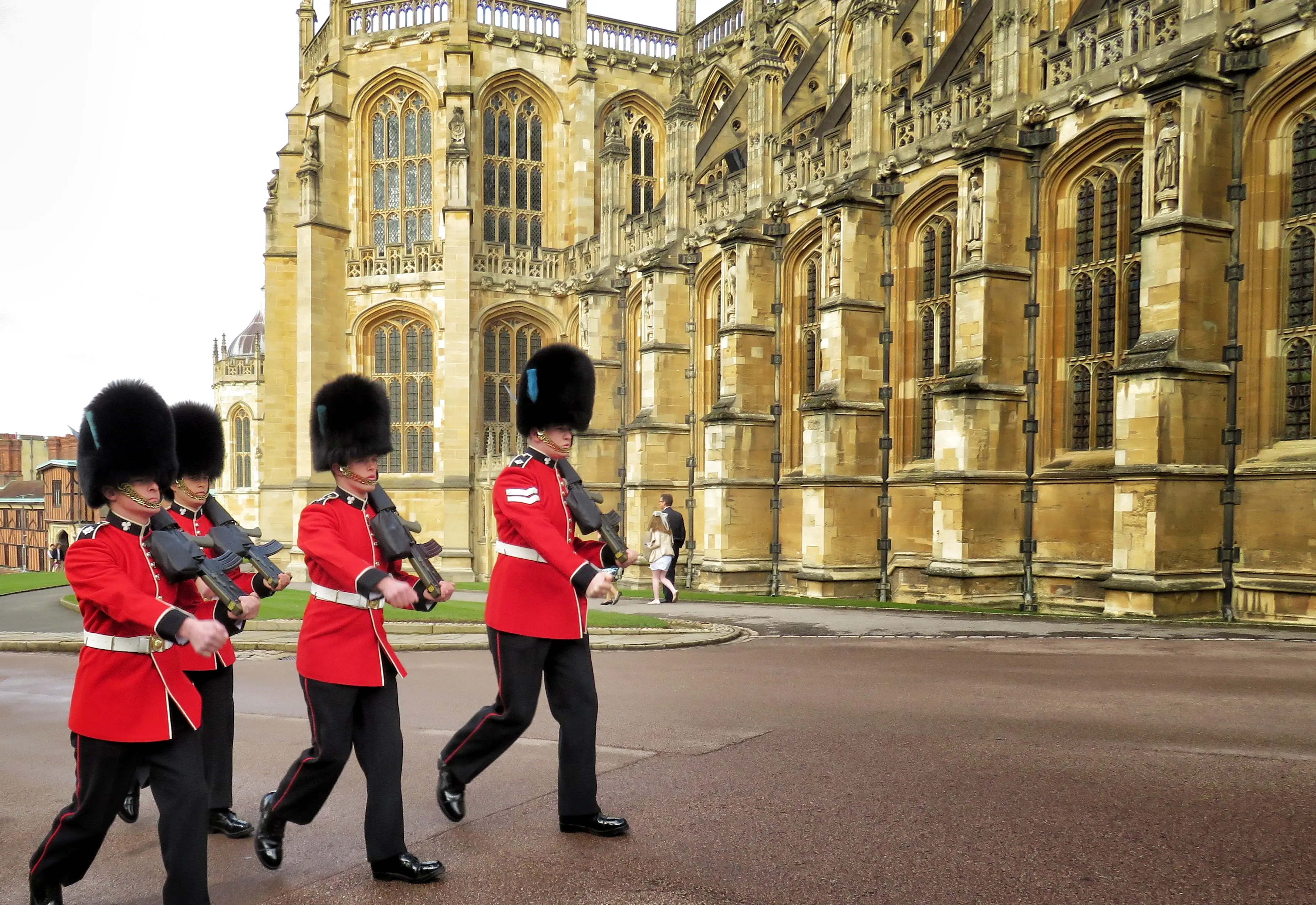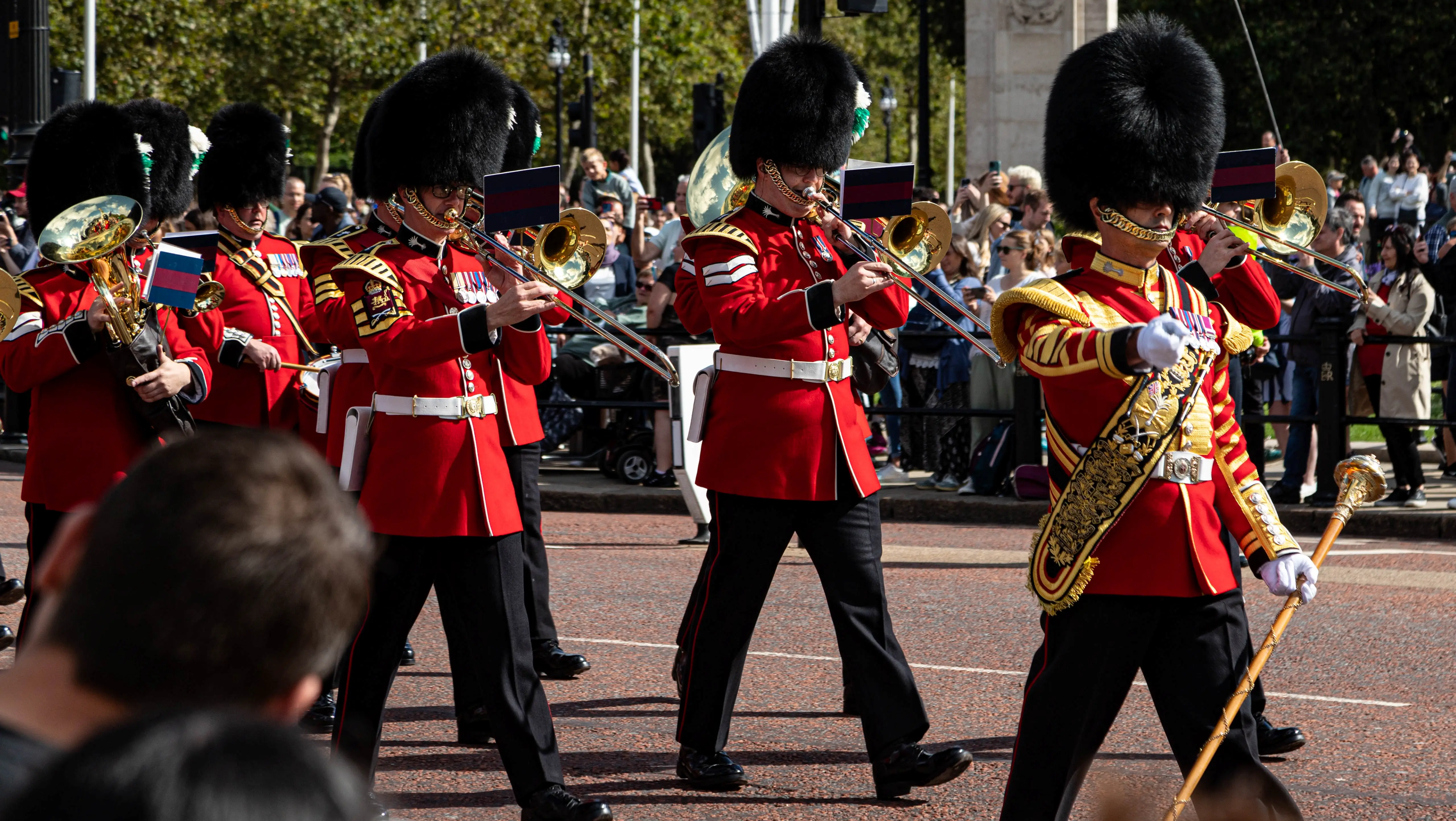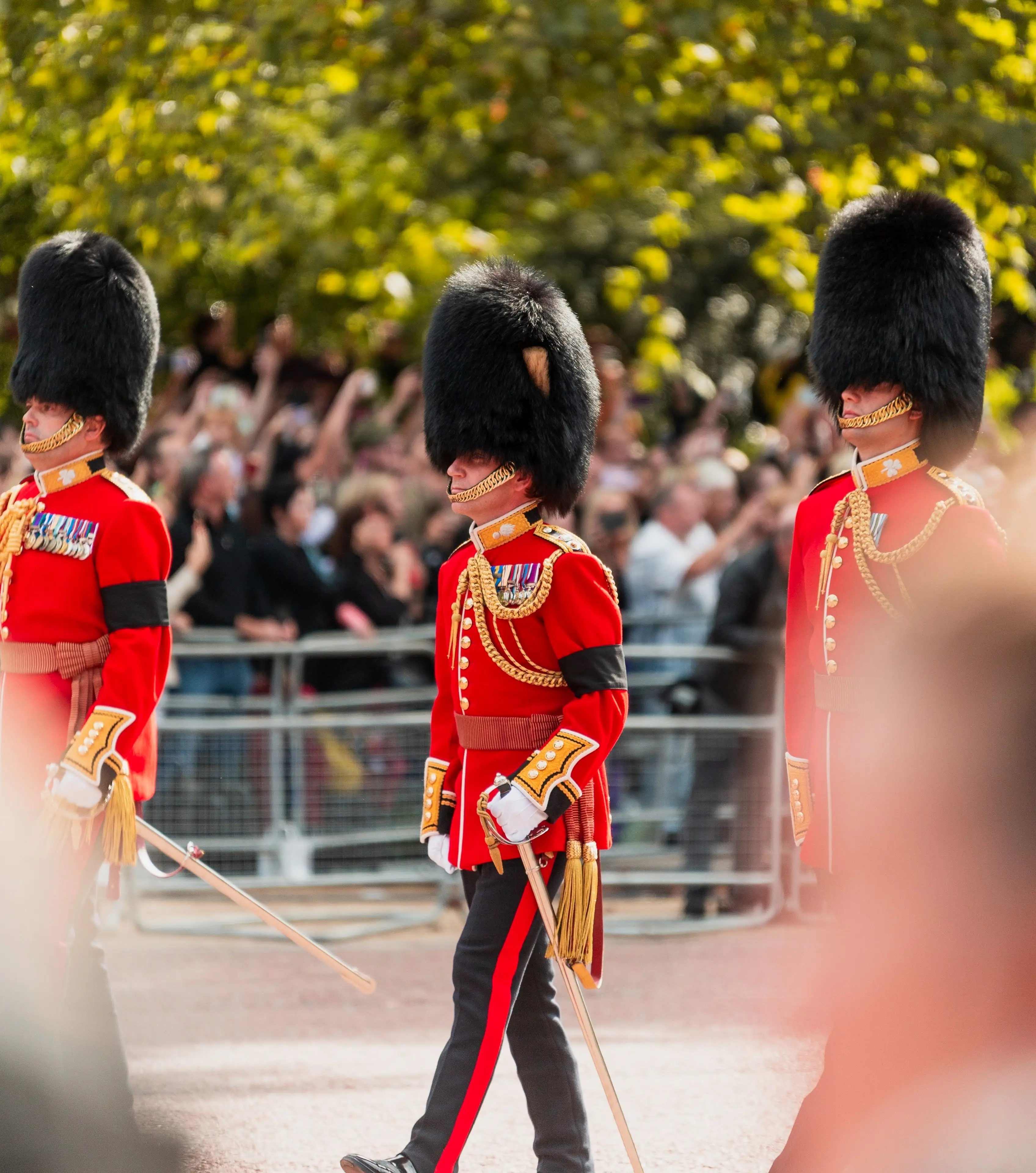 근위병은 별도의 교대식 복장을 입고, 영국 왕실의 중요한 임무 중 하나인 궁전 및 왕의 안전을 담당합니다. 궁전 앞에서 이 근위병 교대식은 관광객과 방문객들에게 큰 관심을 받으며, 많은 사람들이 이 멋진 행사를 관람하기 위해 모입니다.