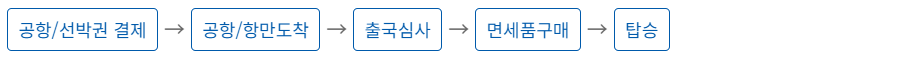 | 출국장 면세점 | 공항만 출국장에 설치되어 출국하는 내·외국인에게 물품을 판매하는 면세점이며, 공항에서 항공기를 기다리며 쇼핑할 수 있고 물품을 바로 수령할 수 있습니다. |