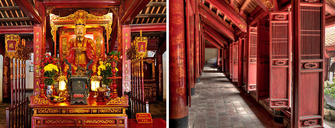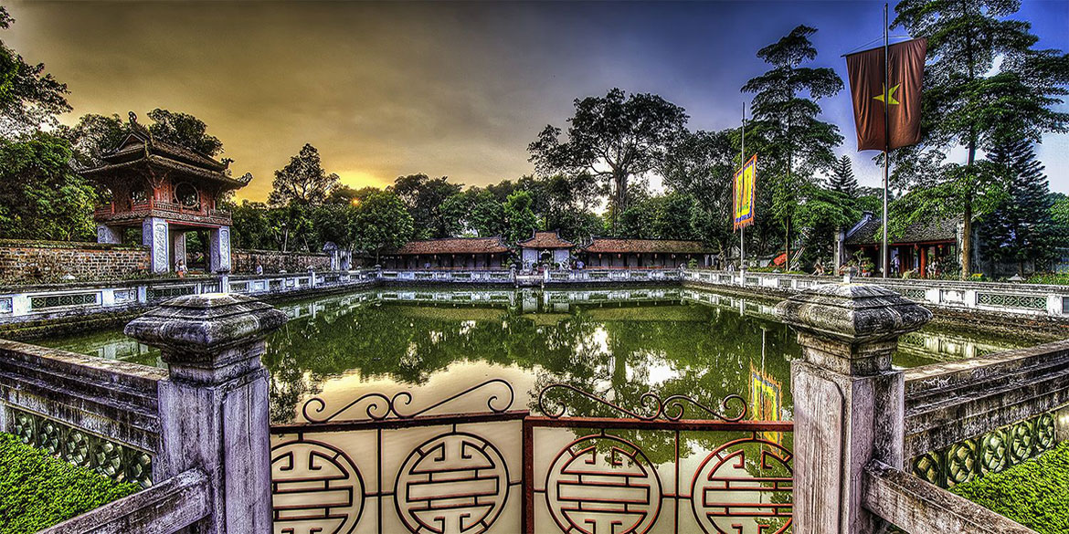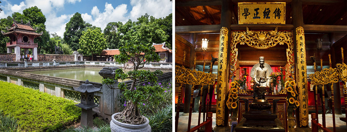 1070년에 공자를 모시기 위해 설립된 건물인 공자묘는 베트남 최초의 대학으로 개교한 연도는 1076년입니다. 이 대학의 입구 부근에는 과거 시험 합격자의 이름이 새겨져 있습니다. 이곳은 녹음이 무성하며 조용하고 차분한 분위기를 지니고 있어 예전부터 지금까지 베트남 학문의 전당으로 불릴 만한 곳입니다.