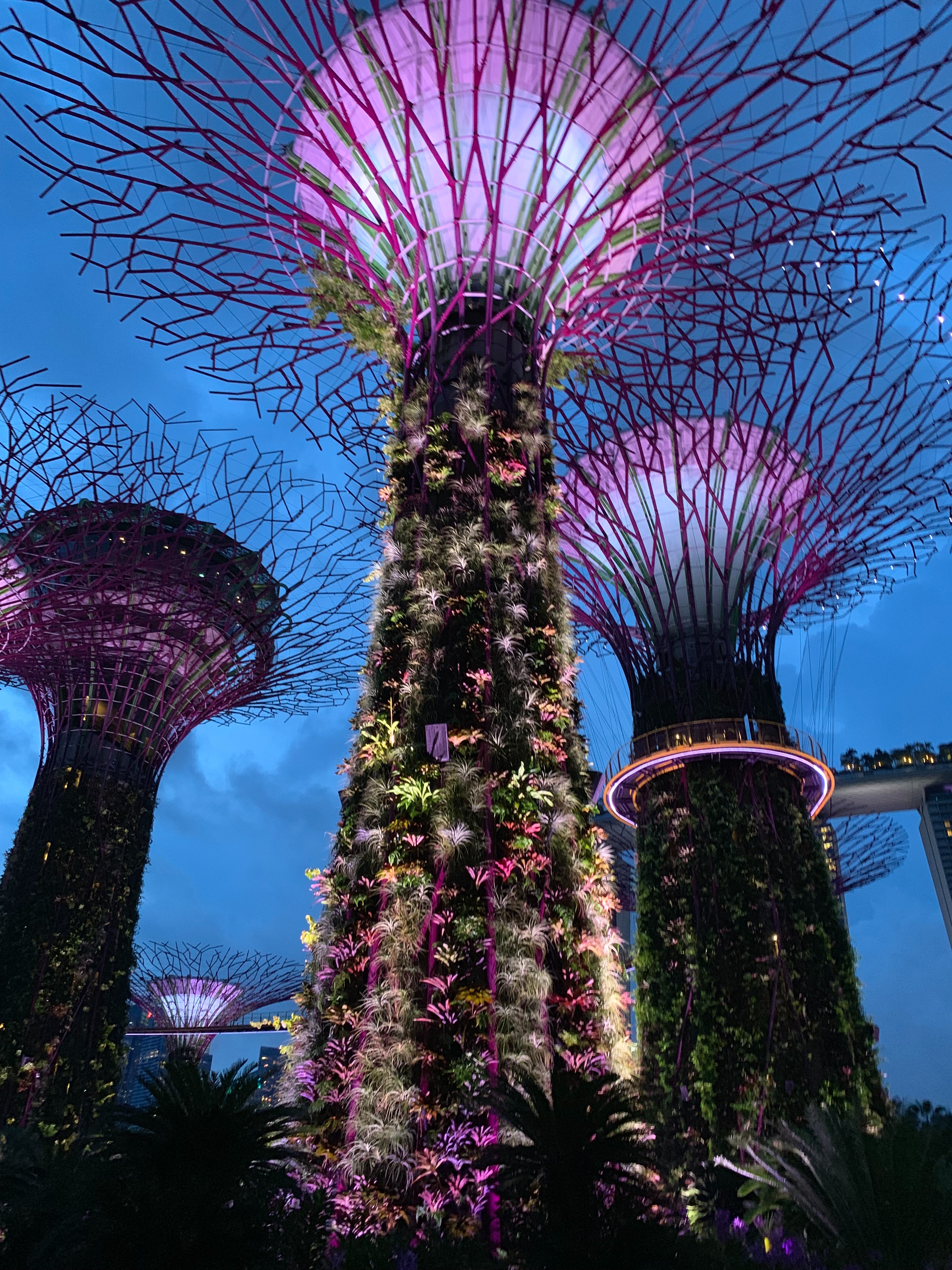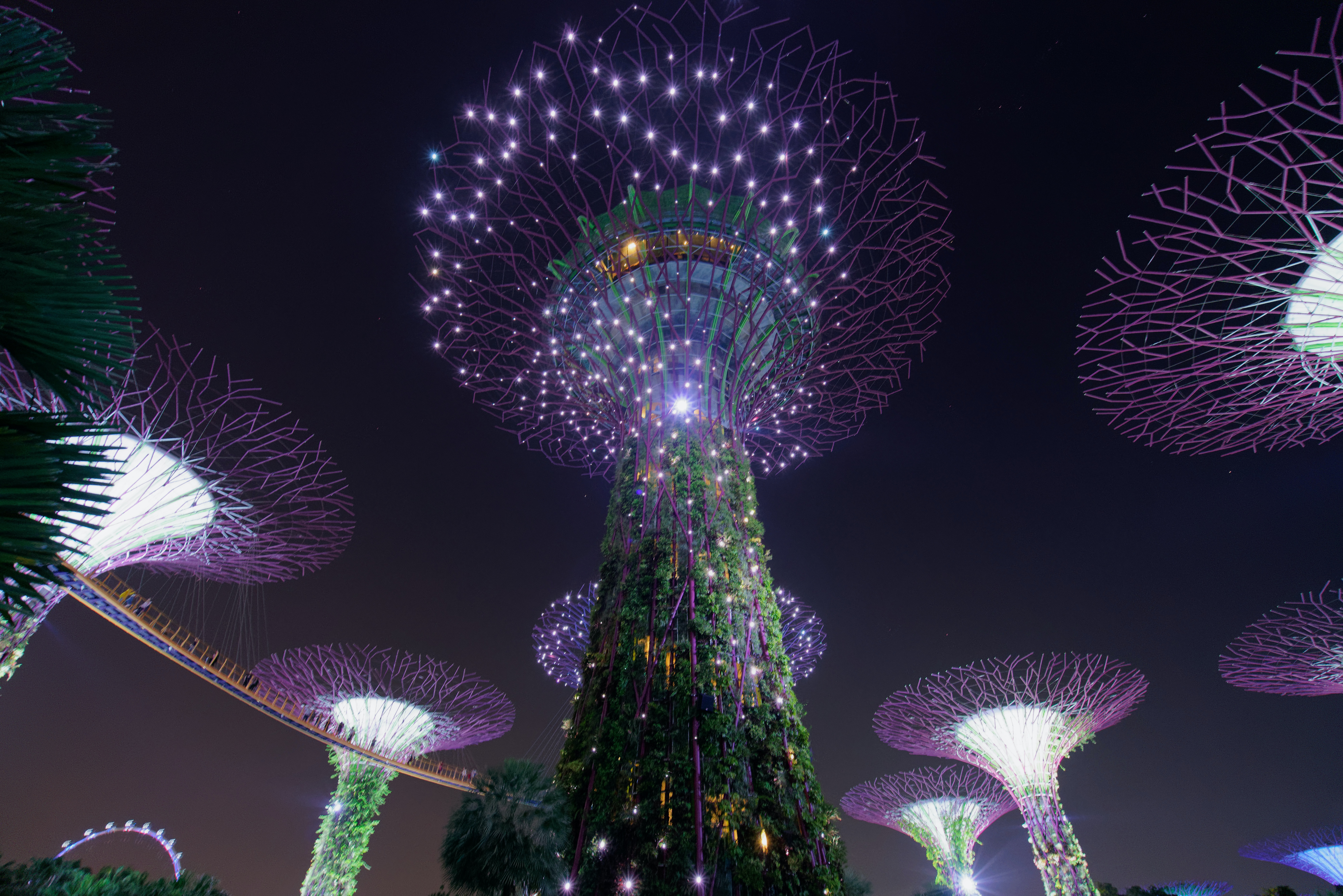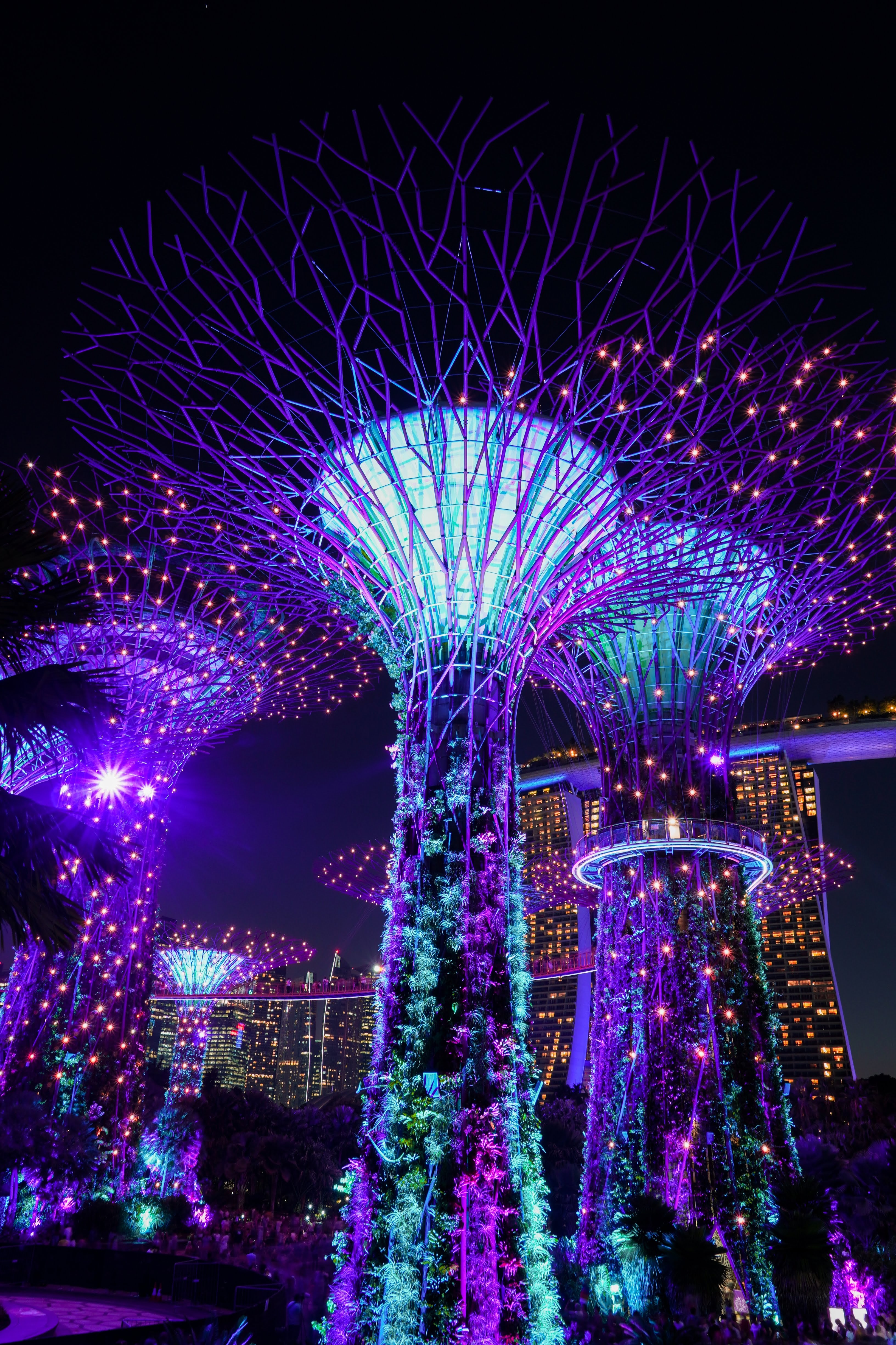 가든스 바이 더 베이의 상징이며, 수직 정원과 조명이 매혹적인 건축물입니다. 저녁에는 멋진 조명과 사운드 쇼인 "슈퍼트리 그로브 라이트 앤 사운드 쇼"를 감상할 수 있습니다.