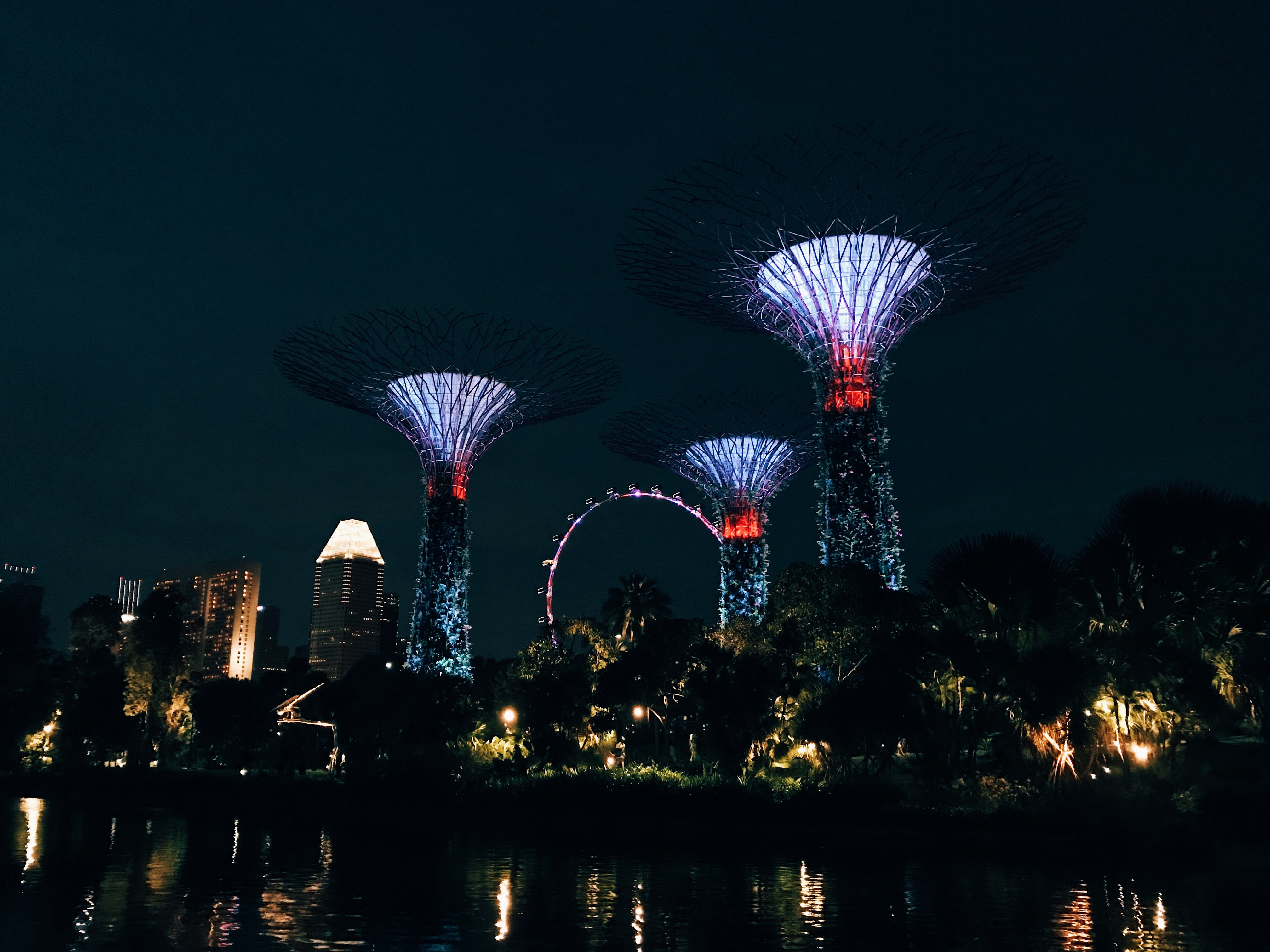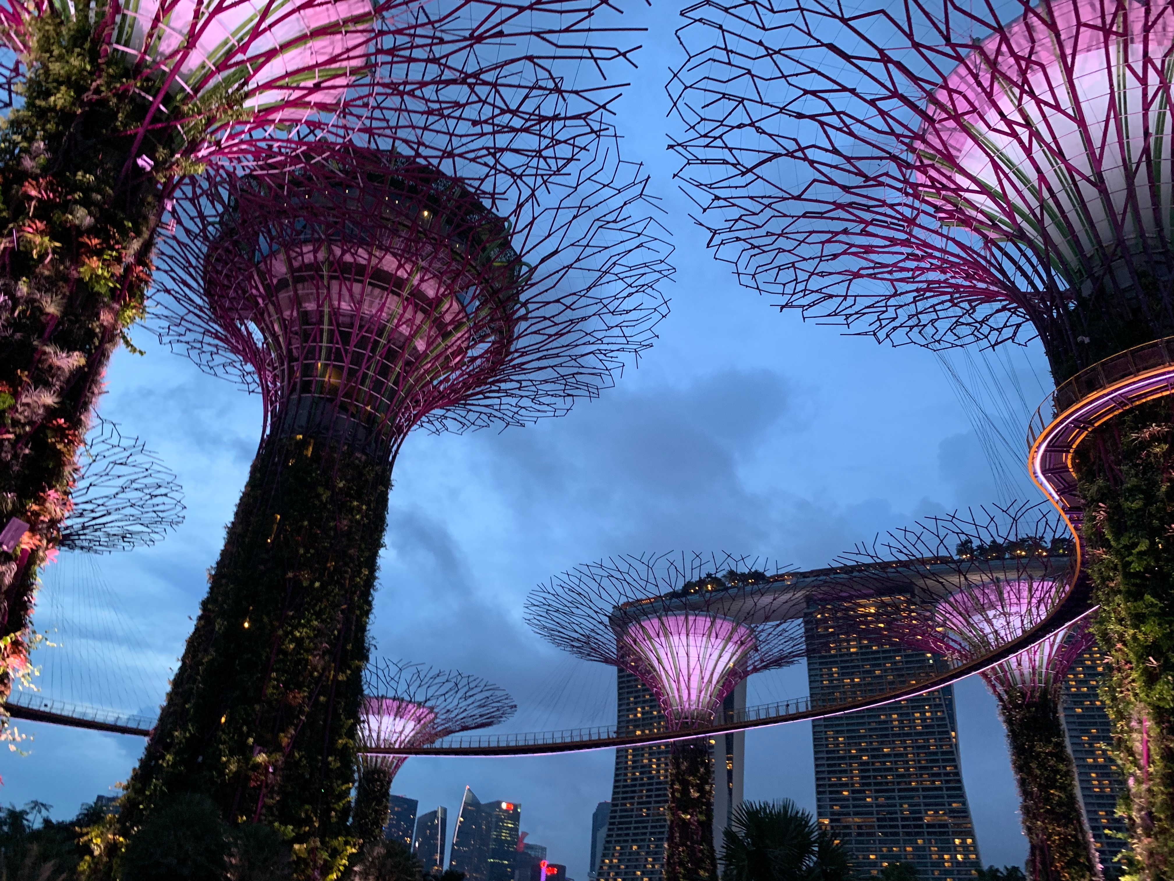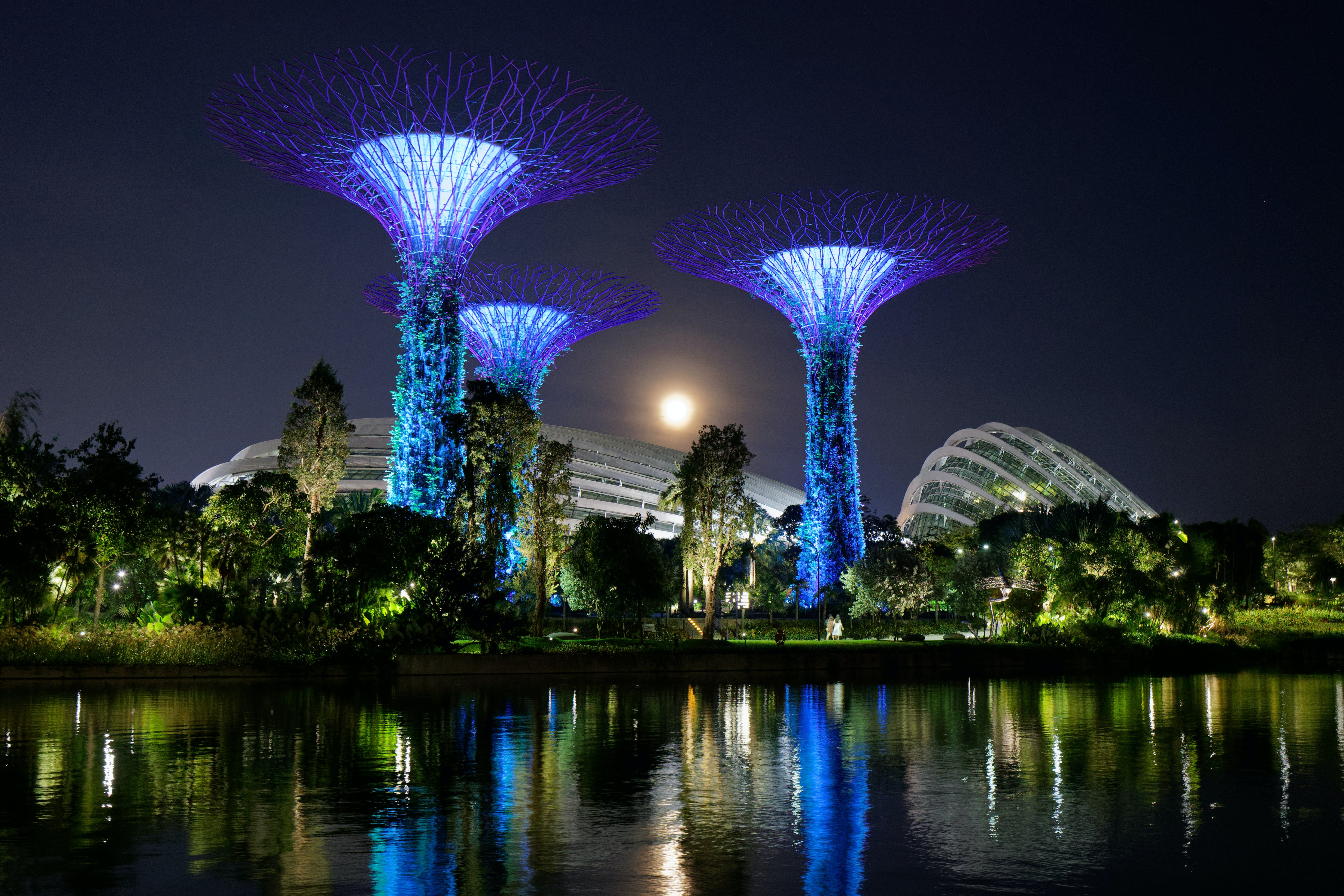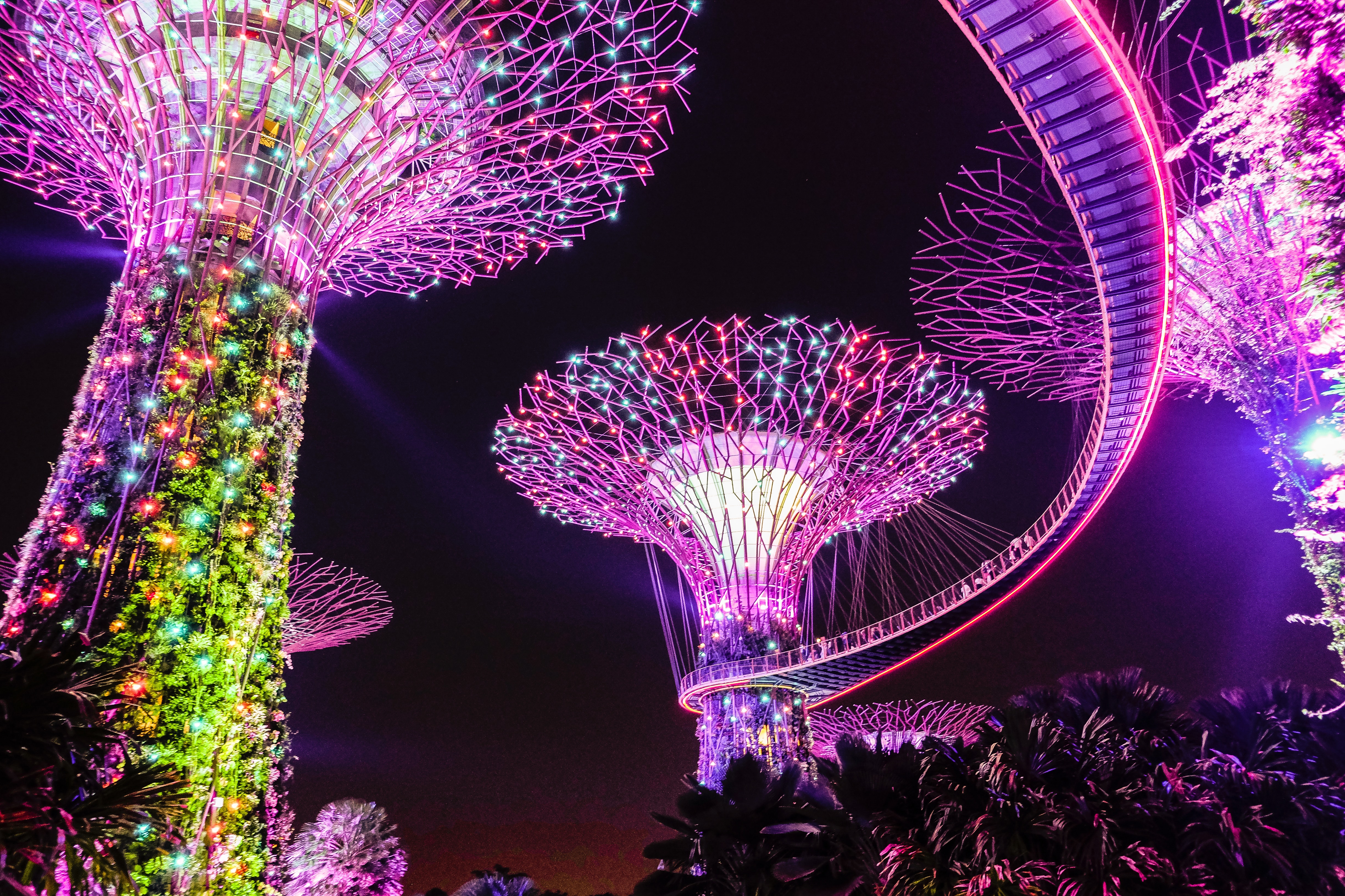 가든스 바이 더 베이의 상징이며, 수직 정원과 조명이 매혹적인 건축물입니다. 저녁에는 멋진 조명과 사운드 쇼인 "슈퍼트리 그로브 라이트 앤 사운드 쇼"를 감상할 수 있습니다.