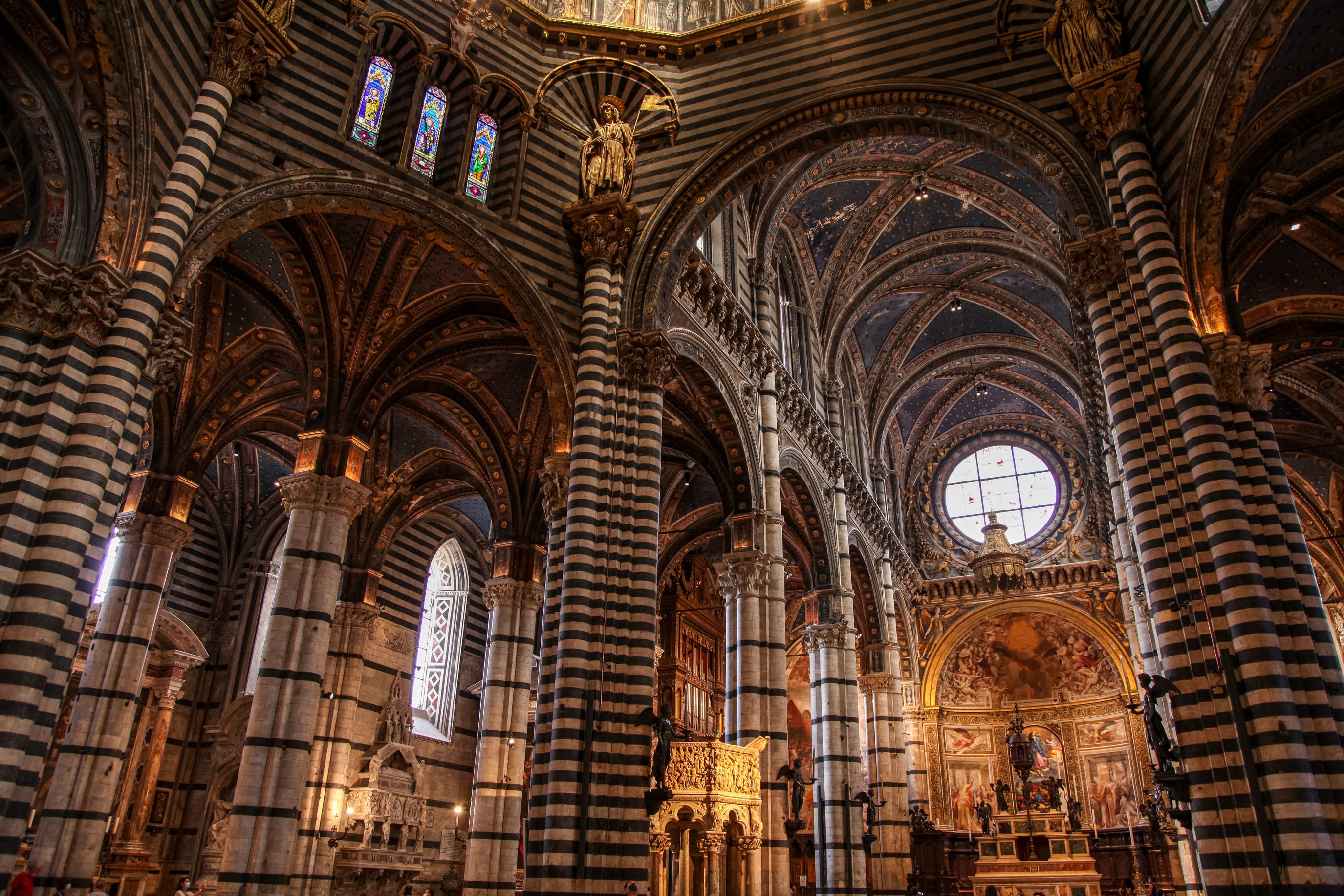 성당 내부는 검은색과 흰색의 대리석이 교차하여 장식되어 있으며, 지면에는 세계적으로 유명한 화가들의 작품을 간직하고 있습니다.