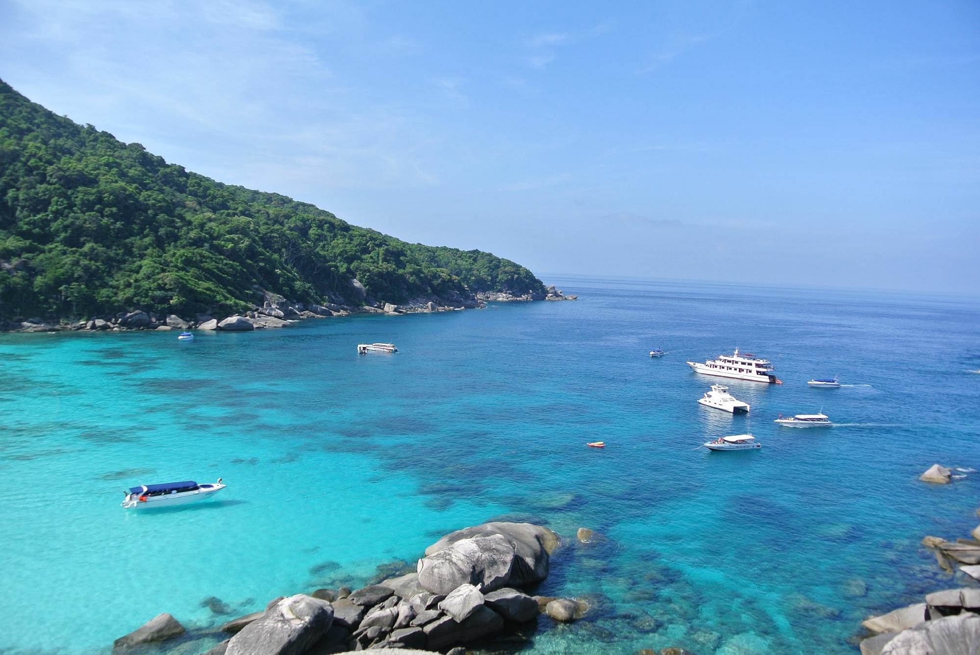 시밀란에서 가장 유명한 랜드마크 중 하나로, 섬의 높은 곳에 위치한 세일 락(Sail Rock)에서 주변 경관을 감상할 수 있습니다. 등반 후 펼쳐지는 아름다운 풍경은 사진 찍기에 완벽한 장소입니다.