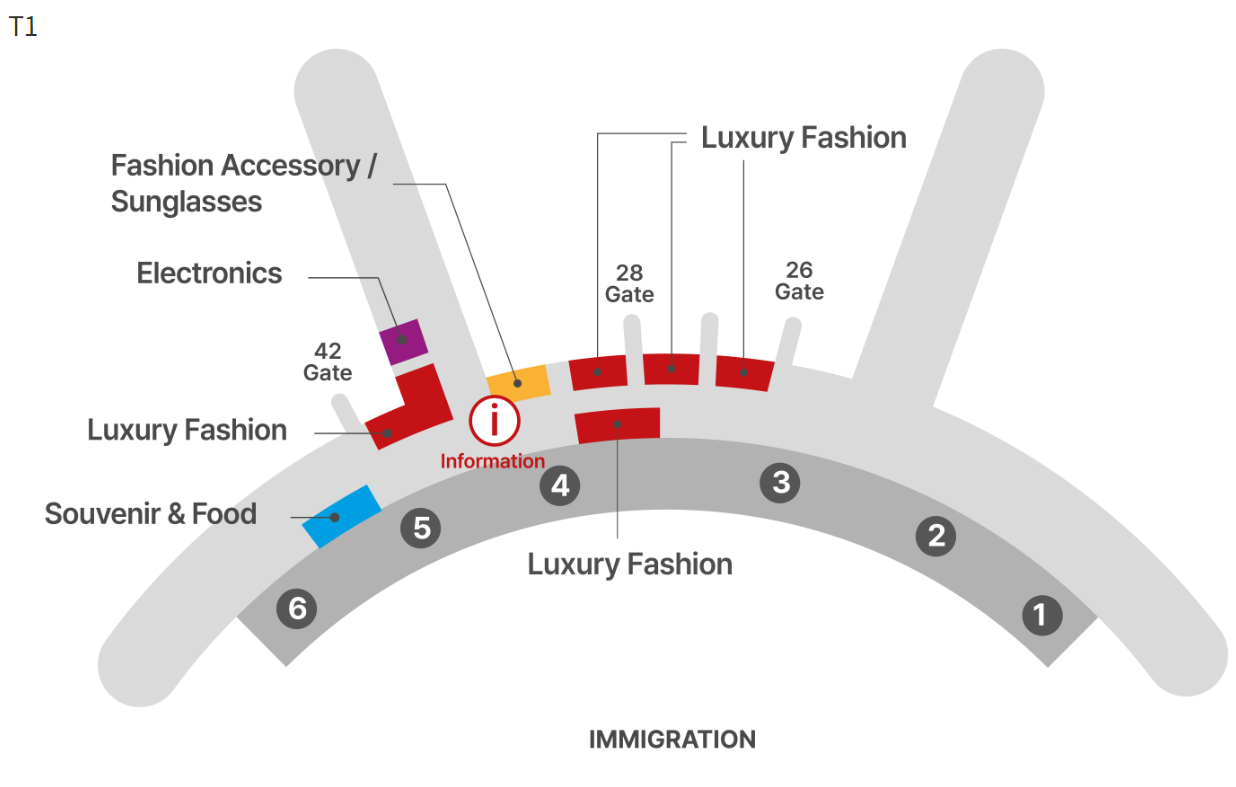 인천공항 제1여객터미널(T1)에서 하이엔드 패션 부티크와 럭셔리 워치 존, 면세 최초 프리미엄 유아ㆍ완구 전용관과 제1터미널에 유일한 전자 매장이 운영하고 있습니다.